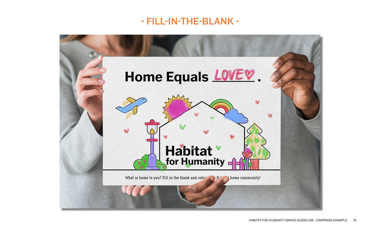Habitat for Humanity is a non-profit housing organization dedicated to solving affordable housing challenges around the world. As they expand their influence to the globe, the 49-year-old institution needs a rebranded visual system that not only captures their meaningful core essence, but also speaks to an international audience in the modern society.